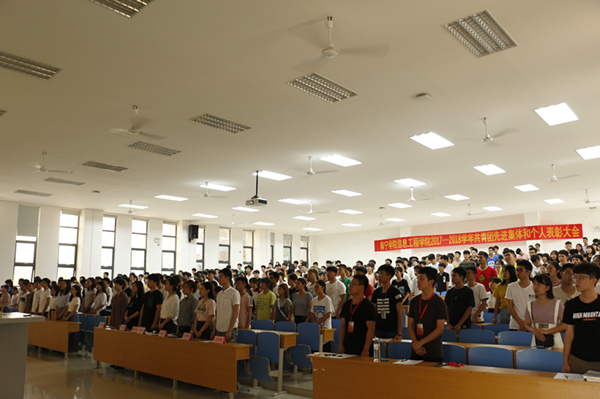 5月15日中午,2017-2018学年共青团先进集体和个人表彰大会在敷文园E-104举行,学院分团委刘珍珍书记,辅导员覃兆刚、韦双妮、孙思涵、韦丹、刘欣蕾、王永强老师出席本次会议。学院2017级、2018级员工代表参加了本次会议。会议由张金水同学主持。