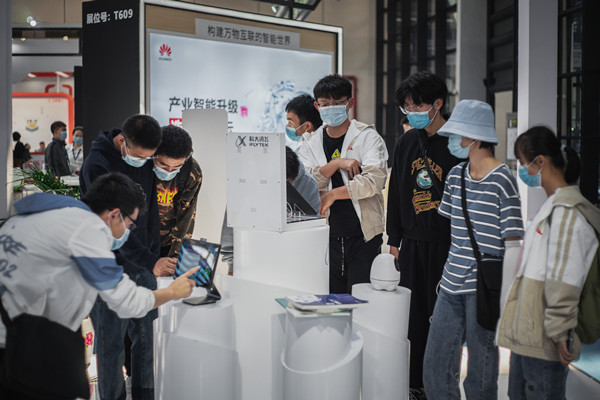 展览会上,学院师生一行分别参观了5号科技成果展区、6号中国东盟数字技术展区、7号人工智能/生命科学/高端医疗展区、12号创新活动展区、13号高端装备先进技术展区和14号国际合作展区等,重点参观了公司校企合作企业——科大讯飞股份有限公司(下简称科大讯飞)展位展出的高精新特作品。在现场工作人员的介绍下,详细听取和观摩了科大讯飞展出的“A.I.+教育、A.I.+政法、A.I.+医疗”等产品,参观期间,同学们积极与科大讯飞工作人员活动交流,详细询问和主动了解相关产品的功能、应用场景等。相关工作人员对于同学们的疑惑一一给予了耐心解答。