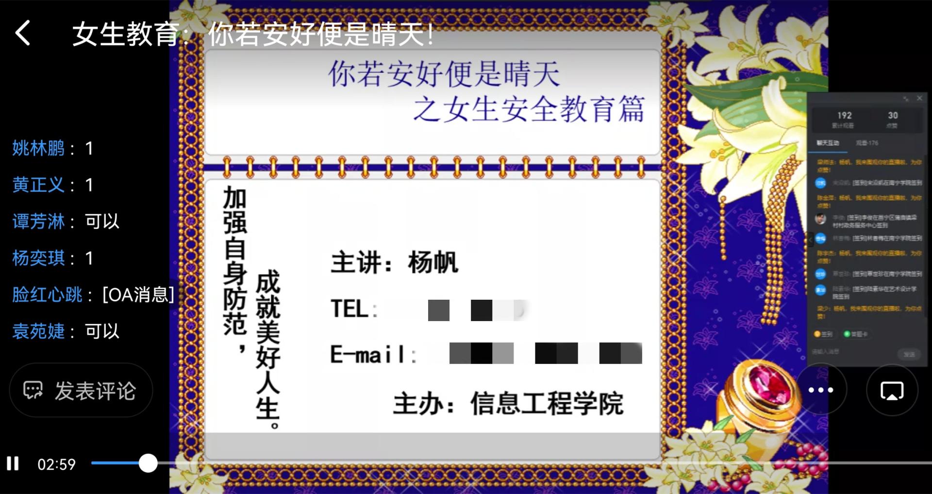 辅导员杨帆线上讲授《女生教育》