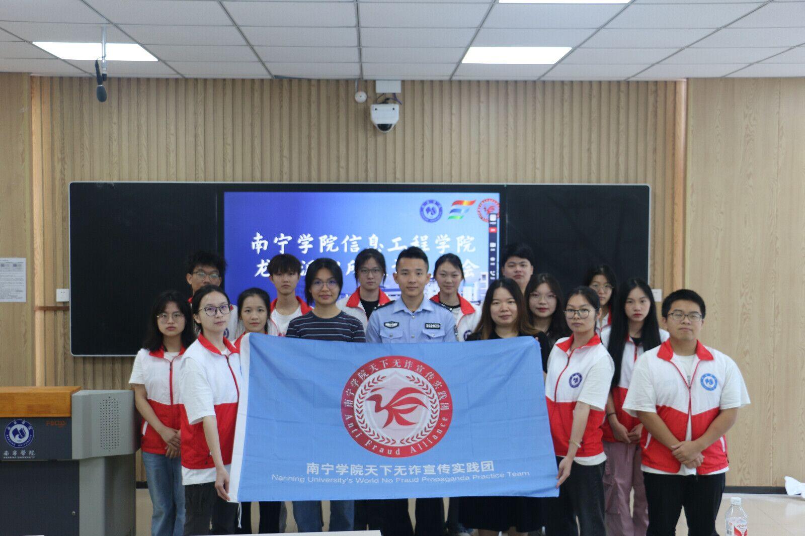 为深入贯彻落实中宣部、公安部“全民反诈在行动”集中宣传月工作部署,进一步增强公司师生的防骗意识和识骗能力,积极营造全民反诈的浓厚氛围,suncitygroup太阳集团组建了由16名师生组成的“天下无诈”宣传实践团,于近日在南宁市各社区开展“全民反诈”系列社会实践活动。7月8日,“天下无诈”宣传实践团组织召开反诈工作专题交流会,邀请南宁市邕宁区龙岗派出所聂警官为实践团全体成员开展反诈知识培训。