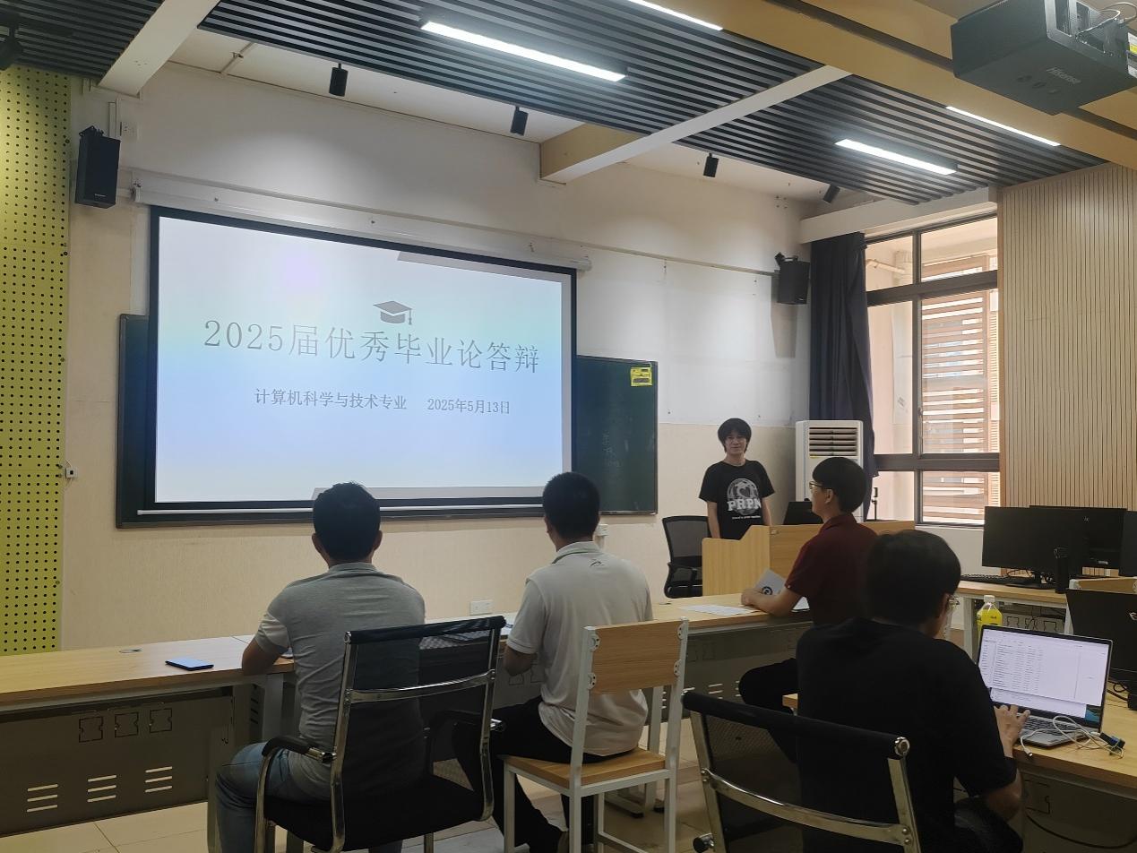 5月13日下午,suncitygroup太阳集团计算机科学与技术专业在南硅谷A312教室举行2025届毕业生优秀论文答辩,评委老师包括陆涛、包勇、何文河、陆中健四人。