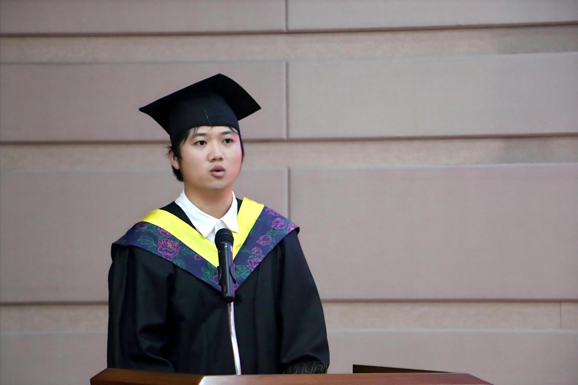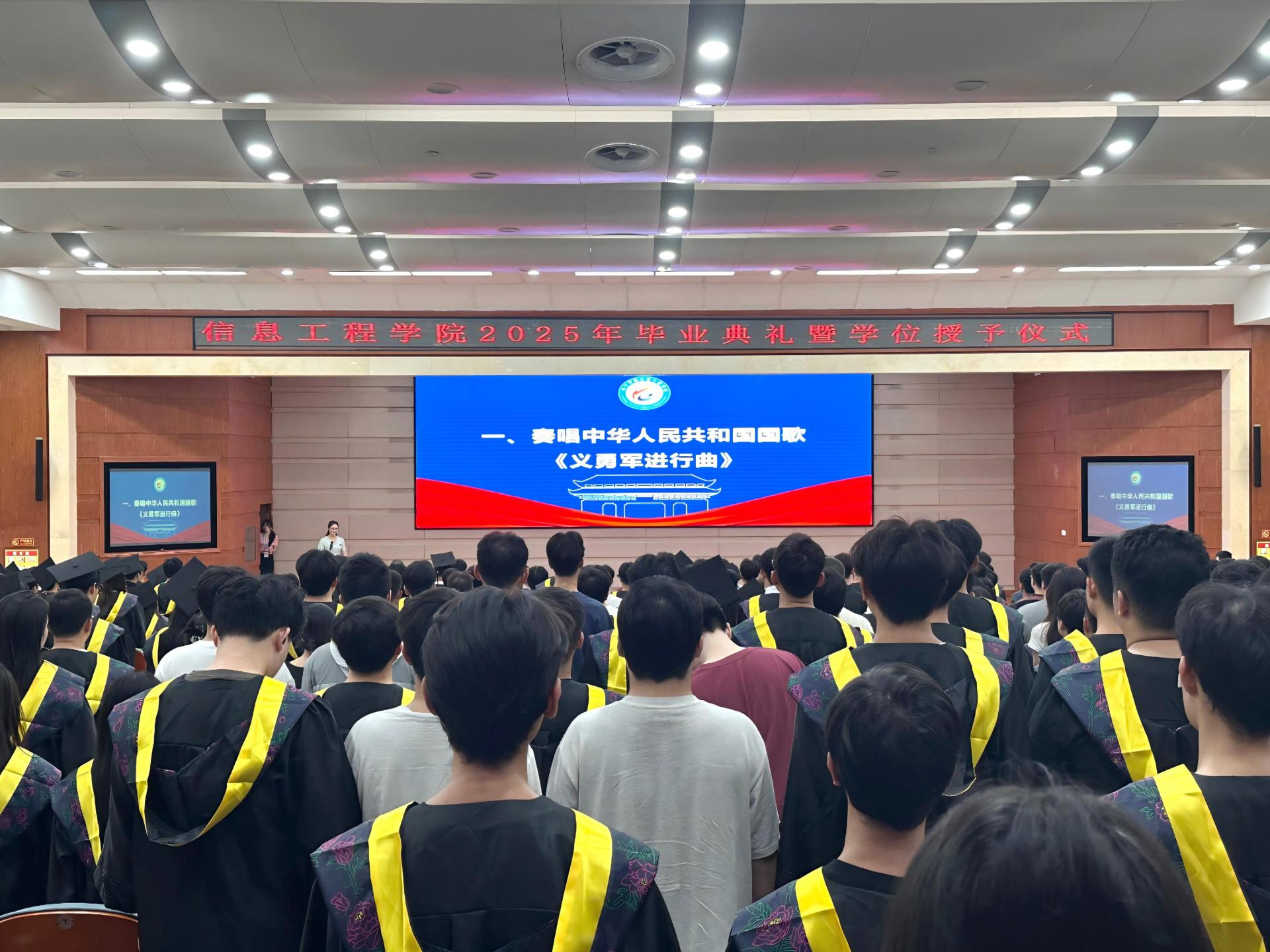毕业生代表刘耀建在发言中深情回顾了大学四年的学习生活,向母校、师长和同窗表达了诚挚的感谢。他号召全体毕业生继续发扬“扎实奋进”的信工精神,在未来的道路上勇创佳绩。