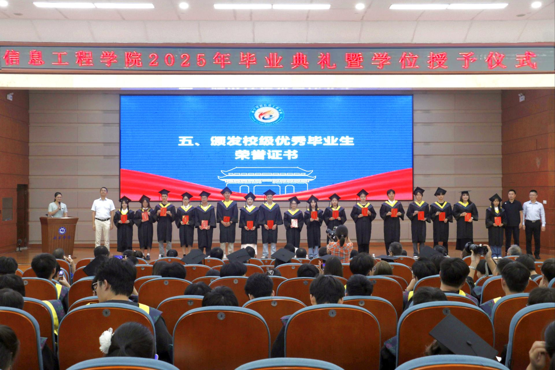 廖秀媛副书记宣读授予学士学位的706位毕业生名单、获得毕业证书的714名毕业生名单以及荣获2025届优秀毕业生称号的毕业生名单。公司学位评定委员会委员陆涛、汪小威、朱雪平等共同为校级优秀毕业生颁发荣誉证书;林宁、危华明、黄赢三位老师为毕业生代表颁发毕业证书。