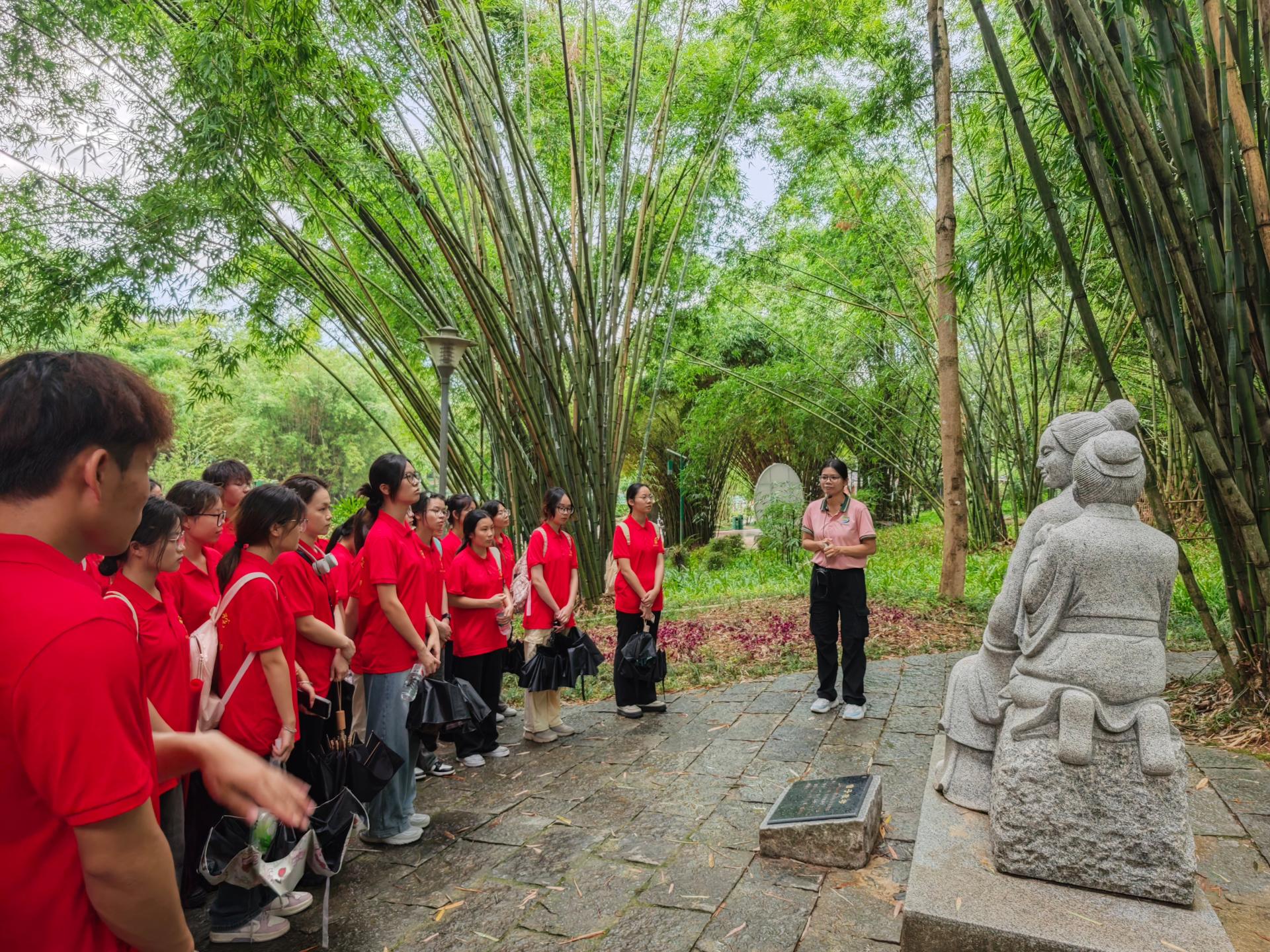 全体党员首先参观了清风广场,广场四周翠竹环绕。讲解员结合竹文化“正直坚韧、虚怀若谷”的精神内涵,为党员们上了一堂生动的廉政教育课。沿着蜿蜒的小径前行,党员们来到清官廉吏雕塑区。党员同志们驻足品读咏竹诗词、廉政楹联,认真倾听郁林太守陆绩、柳州刺史柳宗元等清官的廉政事迹,互相交流心得体会,学习“以廉为镜,以德立身”的崇高品格。