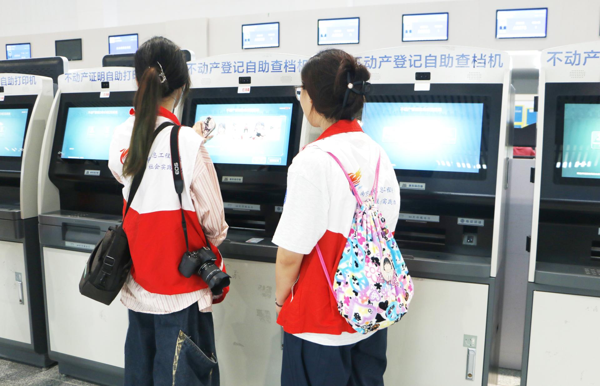 团队成员在体验不动产登记自助查档机