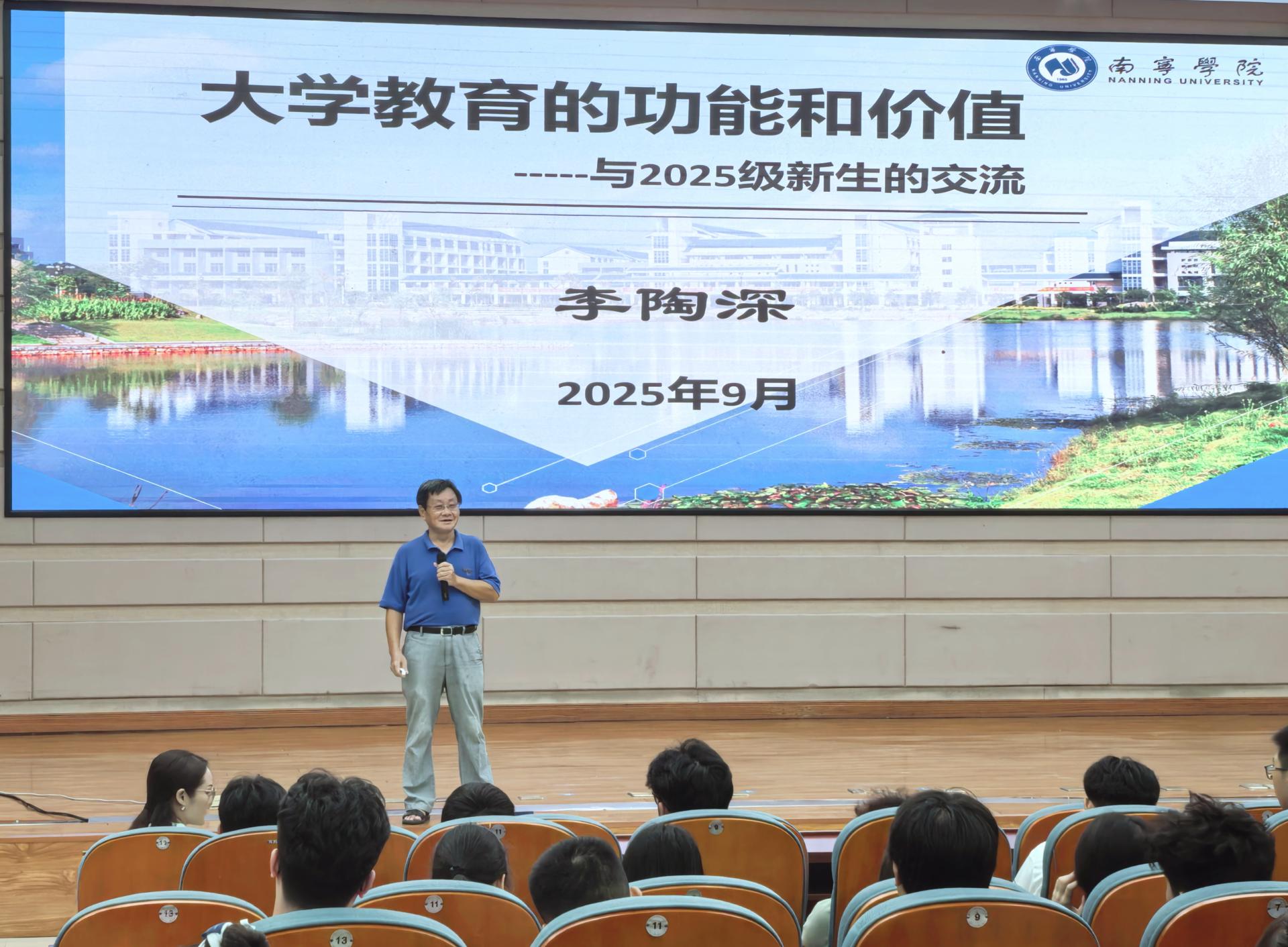 讲座中,李陶深副董事长融通中外教育理念与经典案例,生动阐述大学教育如何促进人的全面发展和社会持续进步。他还结合自身教育与管理经验,就学业规划、时间管理、自我提升等实际问题为新生提出许多中肯的建议,鼓励大家主动探索、勇于尝试,真正成为具有家国情怀和专业素养的时代新人。